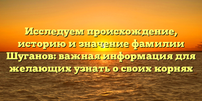 По следам Шугановых: узнаем происхождение и историю фамилии, раскрываем значение для родословных исследований.