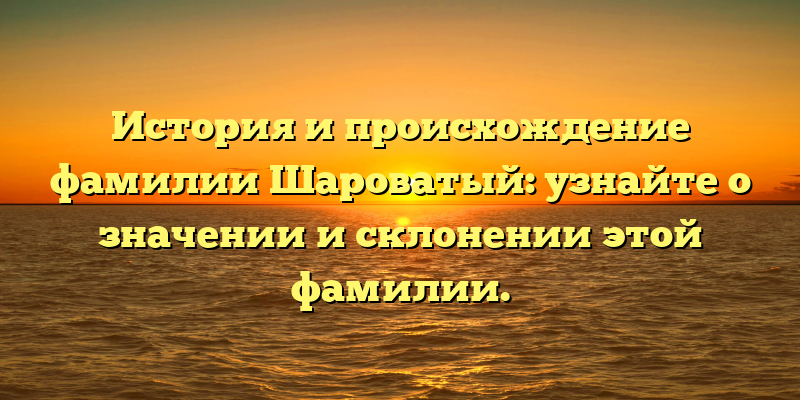 Fascinating Origins and Meanings behind the Sharovaty Surname: Discover the History and Declension of this Name