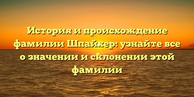 - Фамилия Шпайхер: история происхождения, значение и склонение — все, что вы хотели знать!