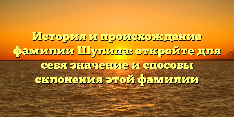 - Погружаемся в происхождение и историю фамилии Шулипа: узнайте ее значение и правила склонения.