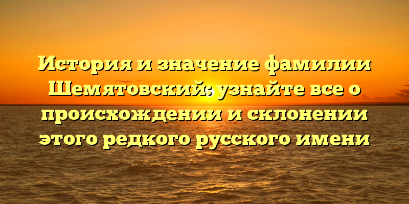- Фамилия Шемятовский: происхождение, значение и склонение редкого русского имени
