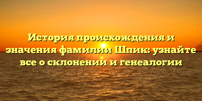 - Раскрываем тайны фамилии Шпик: история происхождения, значения и склонение, а также генеалогия!