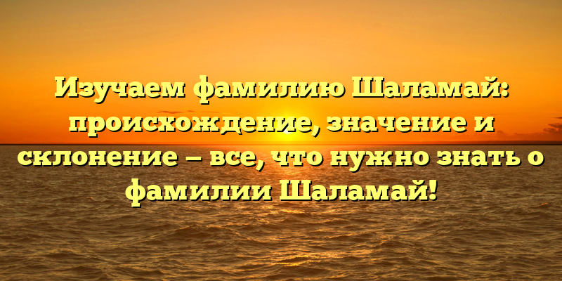 - Раскрываем тайны фамилии Шаламай: происхождение, значение и склонение — путеводитель для любознательных.