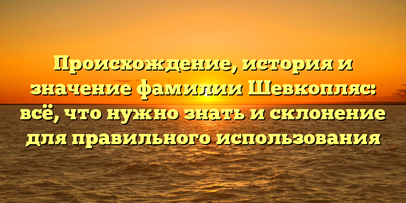 - Раскрываем тайны фамилии Шевкопляс: происхождение, история и важность, а также правила склонения для безупречного использования