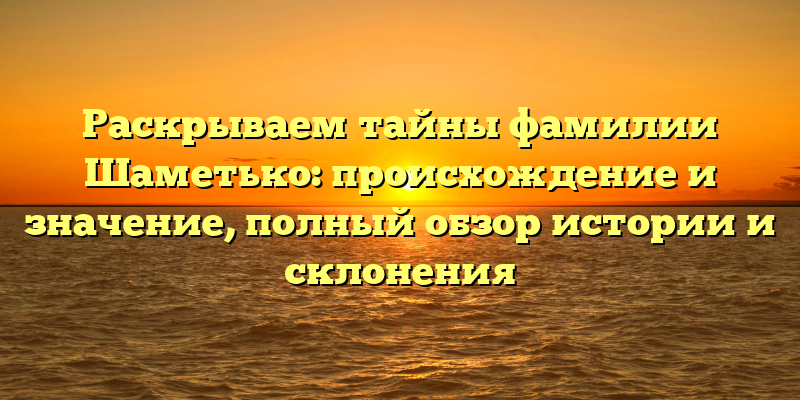 - Открываем завесу тайн о фамилии Шаметько: происхождение, значение и история с полным обзором склонения.