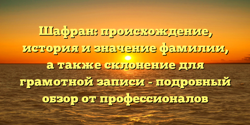 - Шафран: происхождение, история и значение фамилии, а также грамотное склонение — узнайте все в нашем подробном обзоре от экспертов
