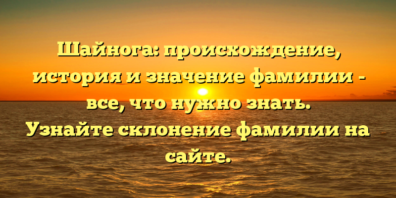 - Рассказываем все о фамилии Шайнога — история, происхождение и значение, а также правильное склонение на сайте!