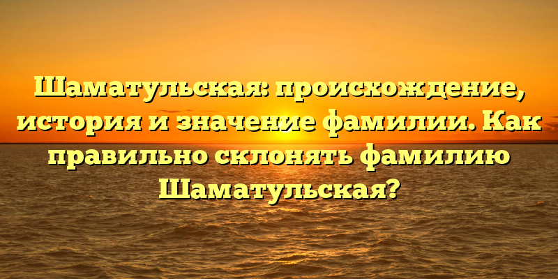 - Шаматульская: исследуем происхождение и историю фамилии, узнаем, как правильно склонять