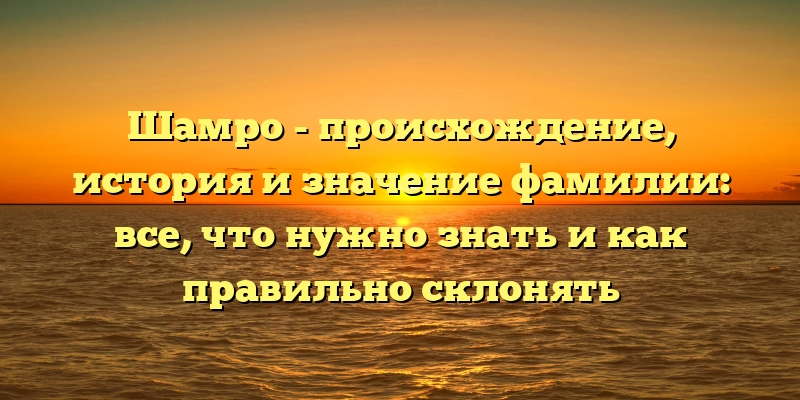 Каждая фамилия имеет свою историю и происхождение, которые отражают многовековые традиции и культуру народа. Одна из таких фамилий — Шамро. Сегодня мы поговорим об истории этой фамилии, о ее значении и о правильной склоняемости.