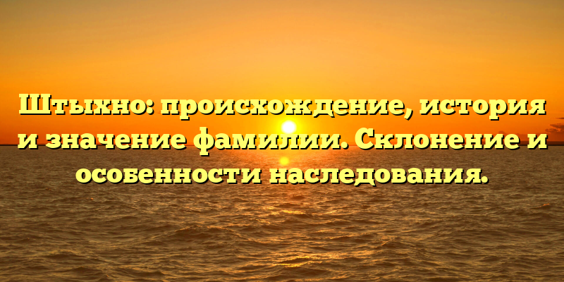 Погружаясь в историю и происхождение фамилии Штыхно, мы узнаем много интересного, что обязательно будет полезно и интересно для всех, кто носит данную фамилию. Именно поэтому мы решили подробно рассмотреть эту тему и рассказать о значении, истории, склонении и других особенностях наследования фамилии Штыхно.