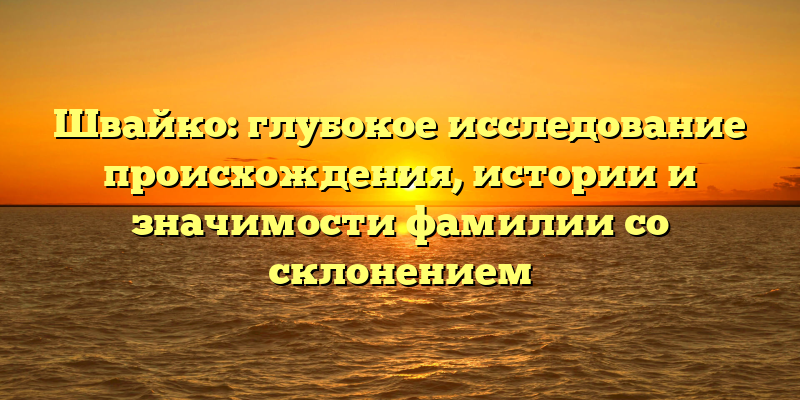 - Швайко: от происхождения до склонения — всё, что вы хотели знать о значимости этой фамилии