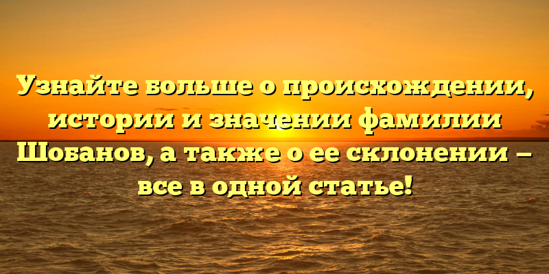 Исследуйте историю и значение фамилии Шобанов вместе с правилами ее склонения в нашей полной статье!