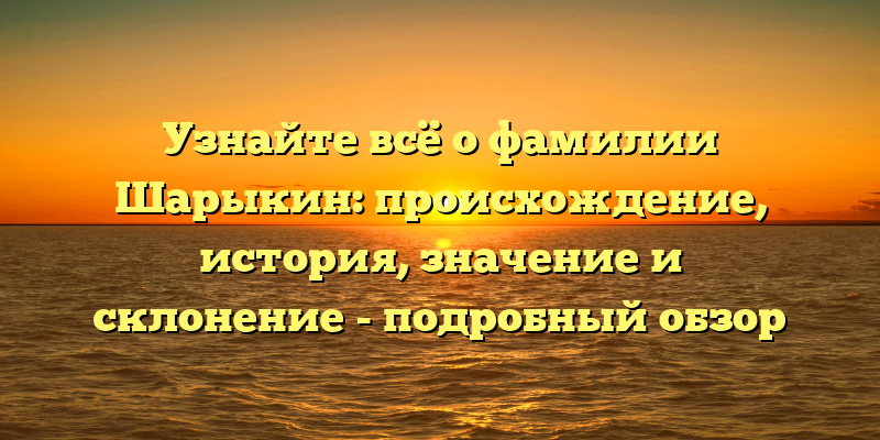 - Фамилия Шарыкин: происхождение, история, значение и склонение — подробный обзор для тех, кто желает узнать все детали