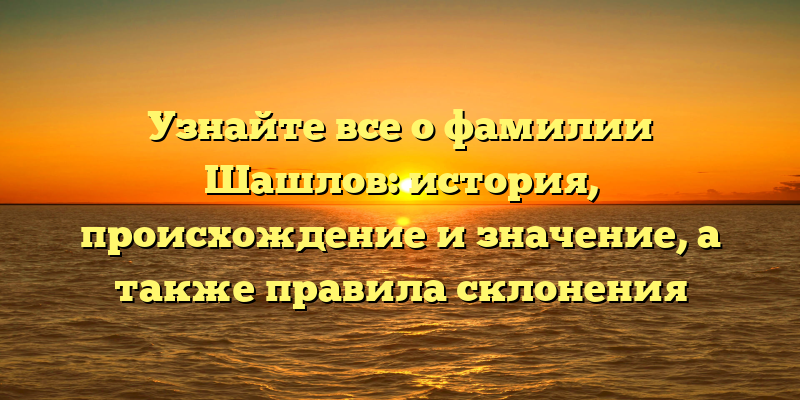 - Раскрываем тайны фамилии Шашлов: происхождение, история и правила склонения
