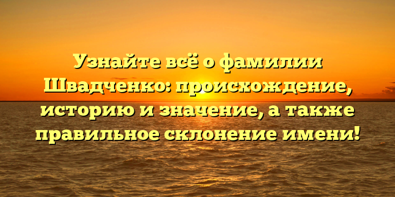 Раскрываем все секреты фамилии Швадченко: происхождение, история и правильное склонение имени.