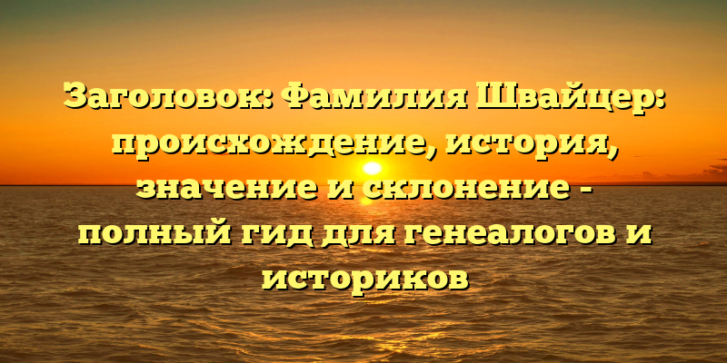 - Фамилия Швайцер: история, происхождение и склонение — гид для генеалогов и историков