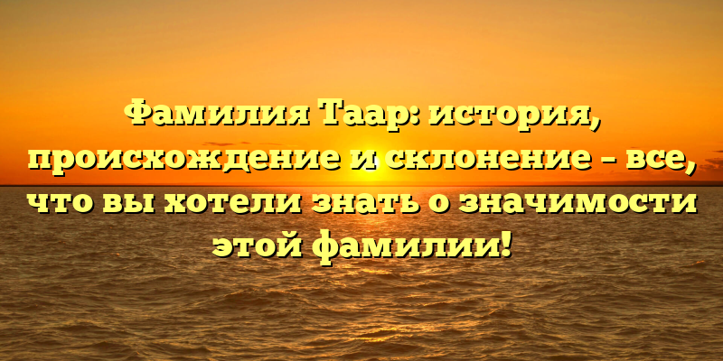 Фамилия Таар: происхождение, история и склонение – раскрываем всю значимость этого рода и его вклад в мировую культуру!