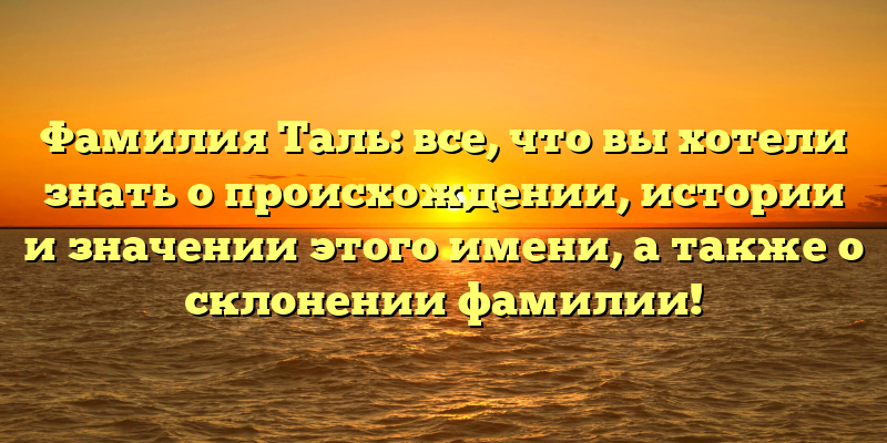 - Фамилия Таль: история, происхождение и склонение — полный гид для любопытных и искателей корней