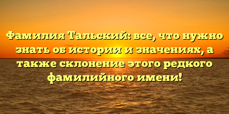 - Фамилия Тальский: история, значения и склонение этого редкого фамилийного имени — полный гид.