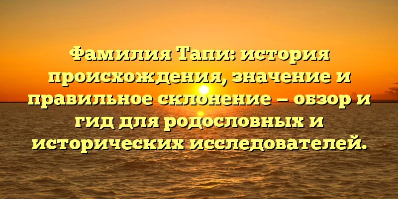 - Фамилия Тапи: история происхождения, значение и склонение — полезный гид для исследователей родословных и истории