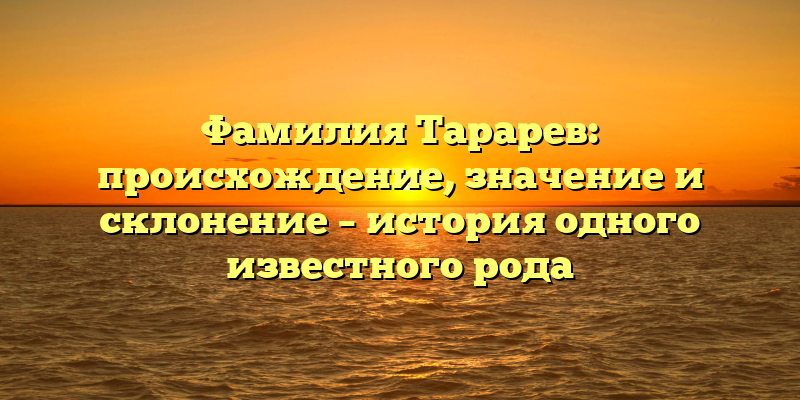 - История Тараревых: происхождение, значение и правильное склонение фамилии