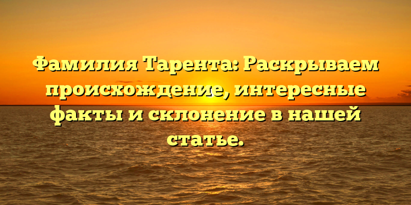 - Изучаем фамилию Тарента: происхождение, ключевые факты и склонение – все, что вам нужно знать!