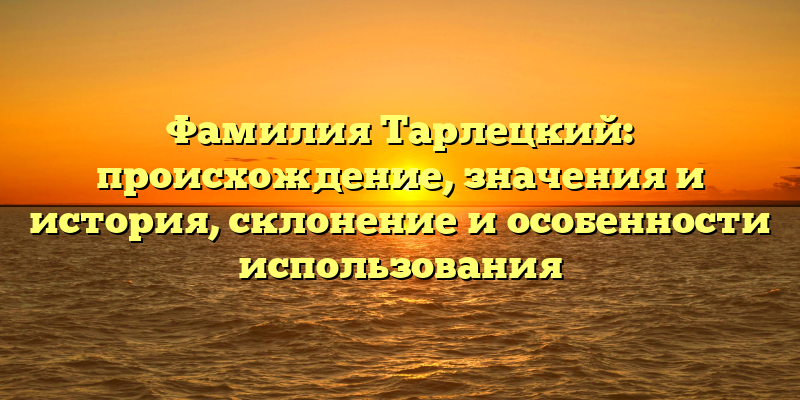 - Фамилия Тарлецкий: происхождение, значения и история, инструкция по склонению и интересные факты об использовании