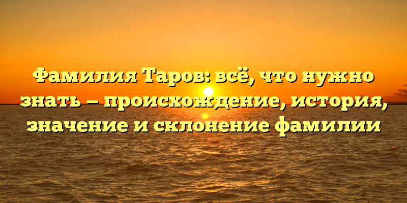 - Фамилия Таров: история и происхождение, значимость и правильное склонение – все, что стоит знать