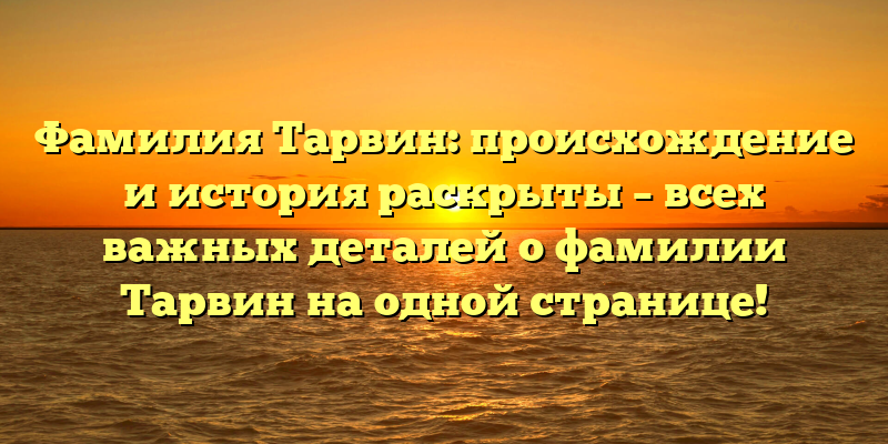 Раскрываем тайны фамилии Тарвин: происхождение, история и ключевые моменты в одной статье!