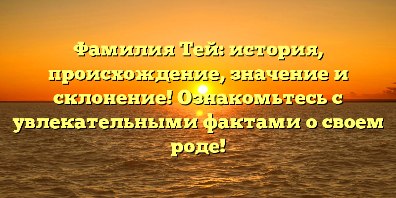 - Откройте тайны происхождения и значения фамилии Тей: узнайте все о своих корнях!