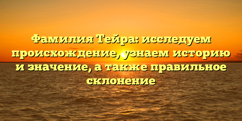 - Фамилия Тейра: происхождение, история, значение и правила склонения — все, что нужно знать
