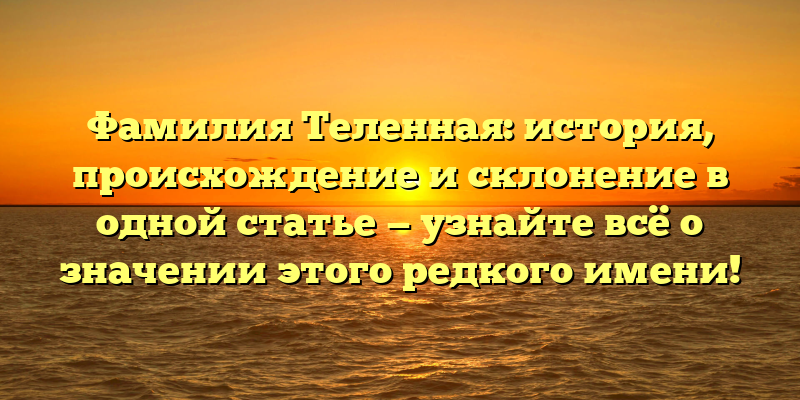 Фамилия Теленная: происхождение, история и склонение в одной статье — история редкого имени с значением, которое вам нужно знать.