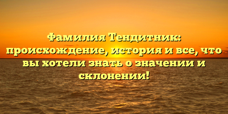 - Все о фамилии Тендитник: происхождение, история и значимость в современном мире