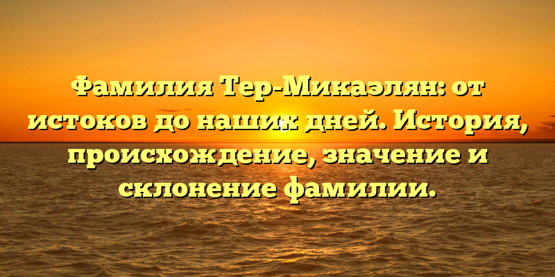 От истоков до наших дней: исследуем историю, происхождение и значение фамилии Тер-Микаэлян в нашей статье.