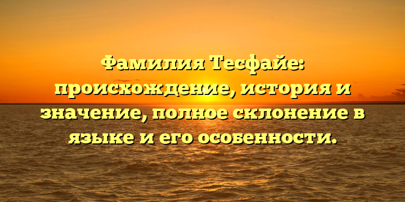 Фамилия Тесфайе может звучать незнакомо для большинства людей за пределами Африки, но этот многозначный носитель имеет древнюю историю, а также ярко выраженное значение в языке и культуре своих родителей. В этой статье мы разберемся, что означает фамилия Тесфайе, откуда она происходит и как ее используют в разных культурах.