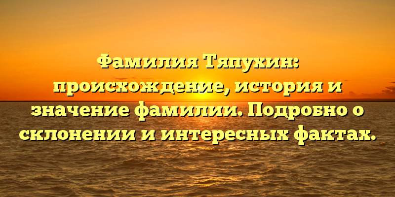 - Откройте тайны фамилии Тяпухин: происхождение, история и интересные факты для новых открытий