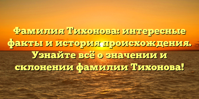 - Фамилия Тихонова: значимость, происхождение и склонение. Интересные факты и история, которые вы, возможно, не знали!
