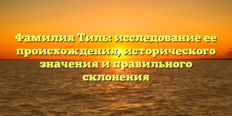 - Фамилия Тиль: происхождение, историческое значение и правила склонения — всё, что нужно знать!