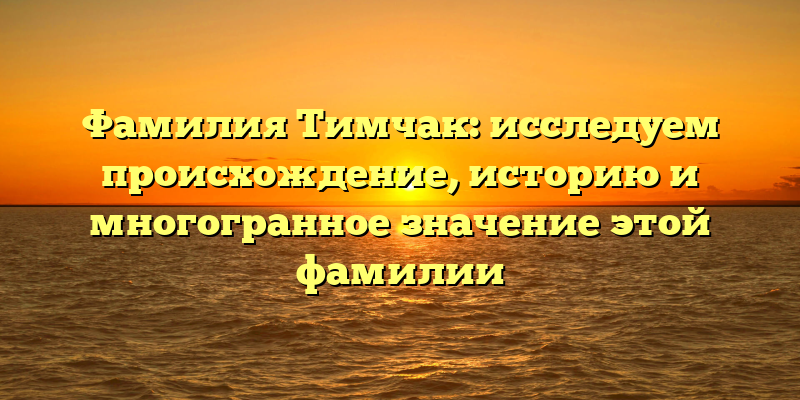 - Фамилия Тимчак: история происхождения и многогранное значение в нашем времени