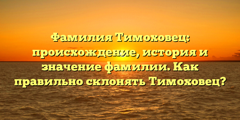- Тимоховец — история и происхождение фамилии, правила склонения и значение для вашего рода: полное руководство