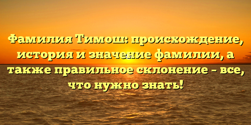 - Фамилия Тимош: происхождение, история и значение фамилии, а также правила склонения – полный гайд для исследователей генеалогии и родственных связей!