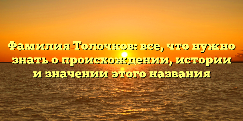 Фамилия Толочков: полное руководство по происхождению, истории и значению этого уникального названия