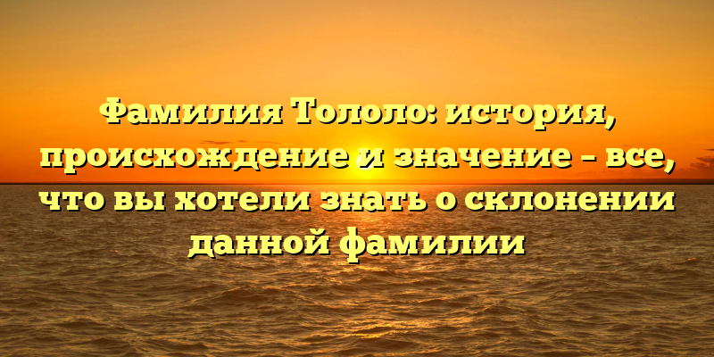 Раскрываем тайны фамилии Тололо: происхождение, история и склонение