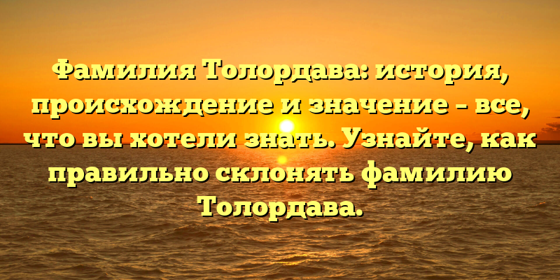 - Раскрываем тайны фамилии Толордава: история, происхождение и правила склонения.