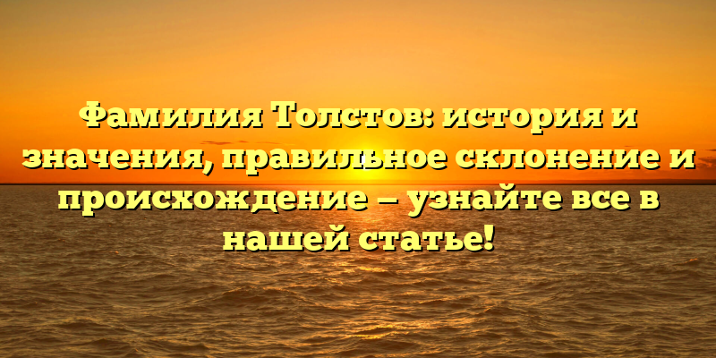 - История, значения и происхождение фамилии Толстов: узнайте правильное склонение в нашей полной статье