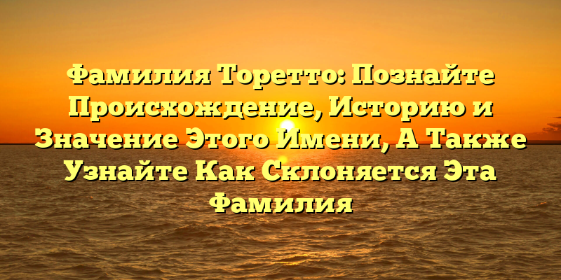 Фамилия Торетто: История, Происхождение и Значение Имени, А Также Склонение этой Фамилии в Разных Ситуациях — Исследуйте все грани этого фамилиарного имени!