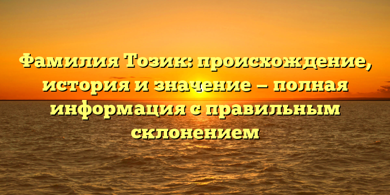 - Фамилия Тозик: история происхождения и значение, с правильным склонением — полная информация для родословных и генеалогов
