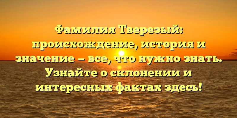- Тверезый: происхождение, история и значение фамилии. Откройте для себя интересные факты и правила склонения.