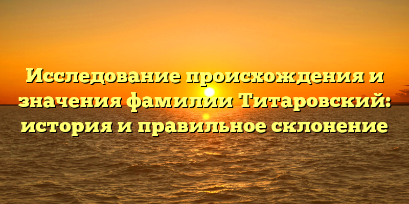 - Раскрытие тайн фамилии Титаровский: история, происхождение и секреты правильного склонения для SEO-оптимизации