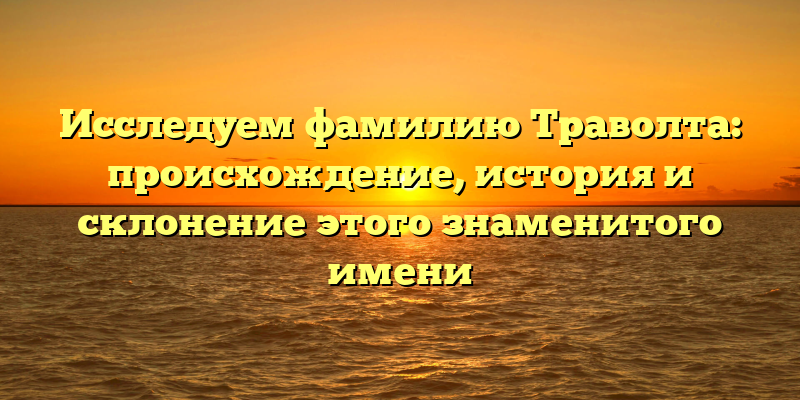 - Фамилия Траволта: история, происхождение и склонение — полное исследование знаменитого имени